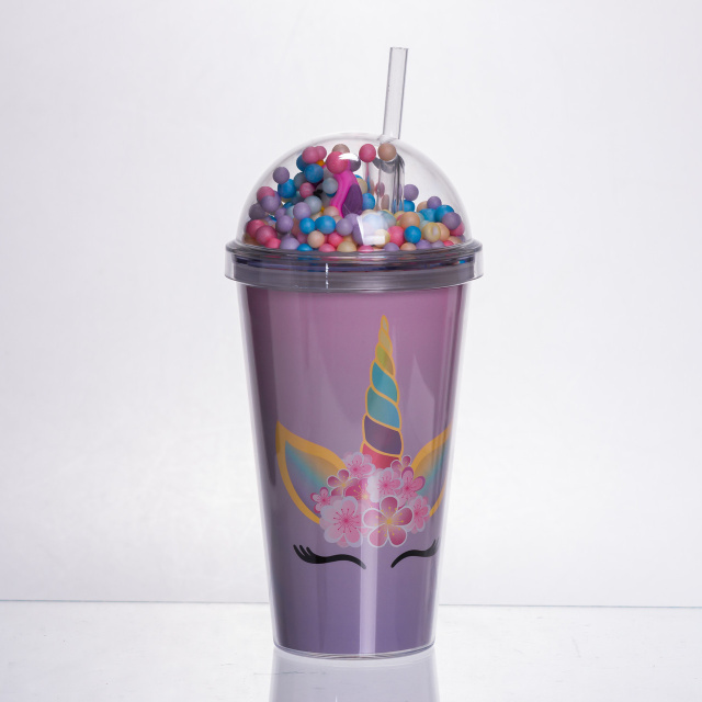 Пластикова склянка з трубочкою та кришкою 400 (мл) багаторазова пластикова склянка Фіолетовий HP-18-2V