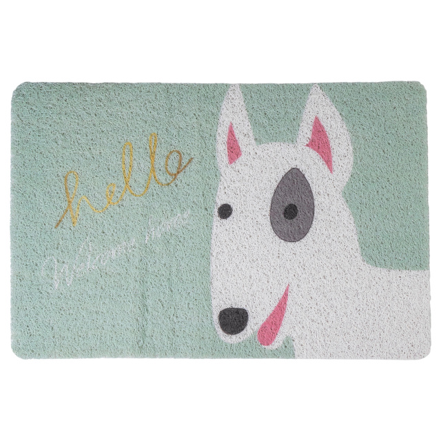 Цей килимок змусить усміхнутися кожного, хто переступає поріг вашого дому. Замість нудного чорного прямокутника, гостей зустрічає чарівний білий бультер'єр з кумедною чорною плямкою на оці та привітним написом "hello". Ніжний м'ятний колір фону додасть свіжості інтер'єру передпокою, а життєрадісний дизайн підніме настрій навіть у похмуру погоду. Килимок виготовлений із сучасного пористого ПВХ (структура "локшина" або "спіраль"), який працює як щітка: пружні волокна ефективно зчищають бруд, пісок та сніг з підошви взуття, затримуючи їх усередині й не даючи розноситися по квартирі. Він не ковзає, не боїться вологи та дуже простий у догляді — щоб очистити, достатньо просто витрусити його або промити під душем. Це ідеальний вибір для власників домашніх тварин та людей з почуттям гумору. Характеристики придверного килимка та брудозахисного покриття: Тип виробу: килимок під двері, брудозахисний; Матеріал: ПВХ (полівінілхлорид); Структура: ворсиста, "вермішель"; Розмір (ДхШ): 60 х 40 см; Вага виробу: 0,600 кг; Декор: малюнок собаки (бультер'єр), напис "hello Welcome Home"; Колір: м'ятний/бірюзовий з білим; Призначення: для передпокою, коридору, ґанку; Особливості: легко миється, затримує бруд, водостійкий.