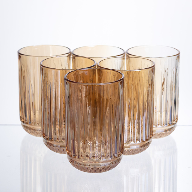 Набір із 6 гранованих склянок об’ємом 400 мілілітрів підходить для подачі води, соків, лимонадів та інших холодних напоїв під час щоденного використання або сервірування столу. Склянки мають зручну форму та достатній об’єм, що дозволяє використовувати їх для різних видів напоїв під час сімейних обідів або зустрічей у хорошій компанії. Склянки виготовлені з товстого скла, яке відзначається міцністю та стійкістю до щоденного використання. Гранована поверхня формує чіткий геометричний рельєф, який додає виробам виразності та забезпечує зручне тримання в руці. Товсте дно сприяє стійкості склянки на поверхні столу. Практична форма та міцний матеріал роблять склянки придатними для регулярного використання вдома. Гладка поверхня скла легко очищується після використання, а універсальний дизайн дозволяє поєднувати їх з різним посудом під час сервірування. Характеристики: Кількість склянок: 6 Об’єм однієї склянки: 450 мл Висота: 12,5 см Матеріал: скло Вага набору: 2.7 кг