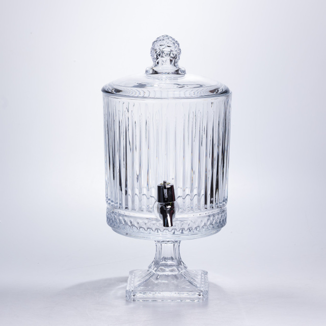 Елегантна лимонадниця з міцного скла ідеально підійде для подавання прохолодних напоїв на святковому столі, фуршеті або в повсякденних умовах. Прозорі стінки надають виробу вишуканого вигляду, а кран забезпечує зручне наливання напоїв. Основні характеристики: Об'єм: 4.5 л; Висота: 40 см; Матеріал: скло; Верхній діаметр: 20 см. Особливості: Міцне та товсте скло, стійке до подряпин; Рельєфний дизайн надає святкового та вінтажного стилю; Зручний кран для дозування напою; Стійка основа на ніжці; Кришка щільно закривається, захищаючи напій від забруднень і комах. Ця стильна лимонадниця стане не тільки зручним аксесуаром на кухні або столі, але й вишуканим елементом сервірування. Ідеально підійде для подавання напоїв влітку, на святах, вечірках або просто для щоденного використання вдома або в офісі. Зручність, місткість і гарний дизайн роблять її чудовим вибором для кожного будинку.