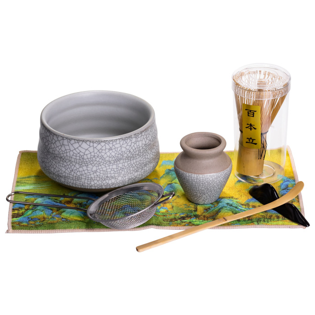 Відкрийте для себе тисячолітнє мистецтво японської чайної церемонії з цим повним набором для приготування матча. Матча (або маття) — це унікальний японський зелений чай, розтертий у найдрібніший порошок. Завдяки особливій технології вирощування та приготування, він зберігає максимум корисних речовин і дарує неперевершений, глибокий смак. Що в наборі для приготування чаю (7 предметів): Чаван (Чаша): Автентична керамічна чаша з ефектом "кракелюр" (сітка тріщин). Її класична кругла форма та розмір ідеально лягають в долоні для традиційного приготування та споживання матча. Часен (Бамбуковий віничок): Головний інструмент церемонії, виготовлений вручну з цільного зрізу бамбука. Його 100 "зубчиків" (ланок) дозволяють ідеально збити чай з водою в єдину консистенцію з ніжною пінкою. Кусенаоші (Підставка для віничка): Елегантна керамічна підставка, яка допомагає віничку Часен зберігати свою форму, правильно сохнути та служити набагато довше. Часаку (Бамбукова ложечка): Спеціальна мірна ложечка, яка допомагає акуратно та красиво відміряти точну кількість порошку матча для вашої порції. Сито: Невід'ємний аксесуар для ідеального напою. Просіювання порошку матча через сито перед збиванням — головний секрет отримання напою без грудочок. Підставка під ложечку: Стильна керамічна підставка, що допомагає зберегти чистоту вашого чайного простору. Рушник: Традиційний рушник для підтримання чистоти посуду під час церемонії. Характеристики чайного набору для медитації: Призначення: Набір для чайної церемонії (Матча); Кількість предметів: 7; Матеріали: Кераміка, бамбук, нержавіюча сталь, тканина; Чаван (Чаша): 1 шт., об'єм ~ 500 мл, розмір ~ 12.5 x 7.5 см; Часен (Віничок): 1 шт., 100 "зубчиків", натуральний бамбук; Сито: 1 шт., довжина 20.5 см, нержавіюча сталь; Підставка під ложечку: 1 шт., керамічна, розмір ~ 9.8 х 2.3 см; Рушник: 1 шт., довжина ~ 16.2 см; Кусенаоші (Підставка для віничка): 1 шт., керамічна; Часаку (Ложечка): 1 шт., натуральний бамбук. Цей набір містить усе необхідне, щоб ви могли провести церемонію правильно, естетично та з першого разу отримати ідеальний напій без грудочок.